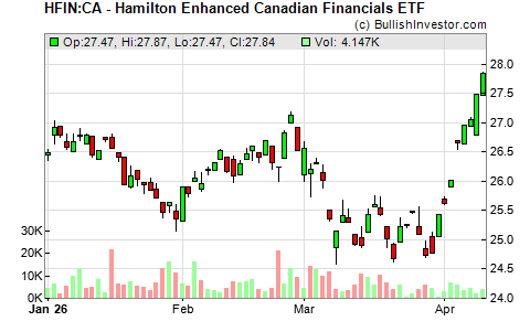 Hamilton Enhanced Canadian Financials ETF (HFIN:CA:TSX)