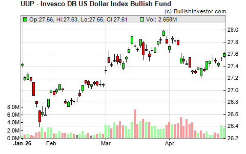 Did you know that BullishInvestor.com has an advanced view for UUP which let’s experienced technical traders analyze the stock chart of UUP and input specific technical indicators, moving averages, price bands and much more. To view and plot your custom technical stock chart, select the "advanced view" option for UUP located near the top right hand corner of this page or simply click the button below.