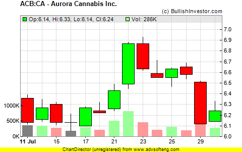 Did you know that BullishInvestor.com has an advanced view for ACB:CA which let’s experienced technical traders analyze the stock chart of ACB:CA and input specific technical indicators, moving averages, price bands and much more. To view and plot your custom technical stock chart, select the "advanced view" option for ACB:CA located near the top right hand corner of this page or simply click the button below.