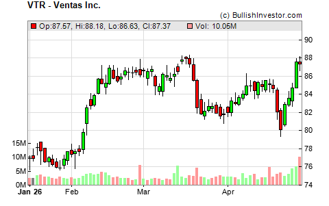 Did you know that BullishInvestor.com has an advanced view for VTR which let’s experienced technical traders analyze the stock chart of VTR and input specific technical indicators, moving averages, price bands and much more. To view and plot your custom technical stock chart, select the "advanced view" option for VTR located near the top right hand corner of this page or simply click the button below.